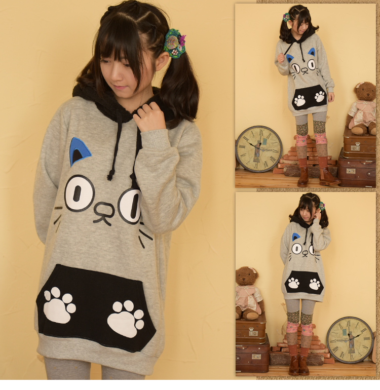 Material: cotton+fleece Color: pink,grey One Size Length 68cm,bust 92cm, shoulder 37cm,sleeve 55cm