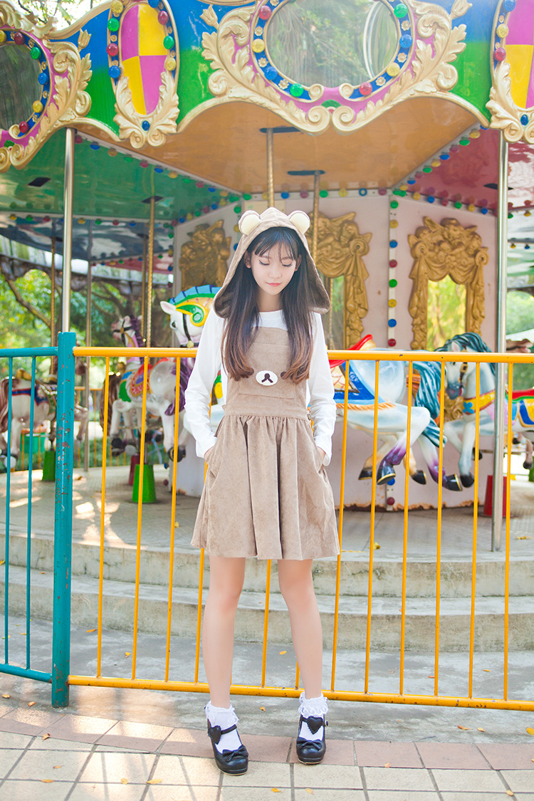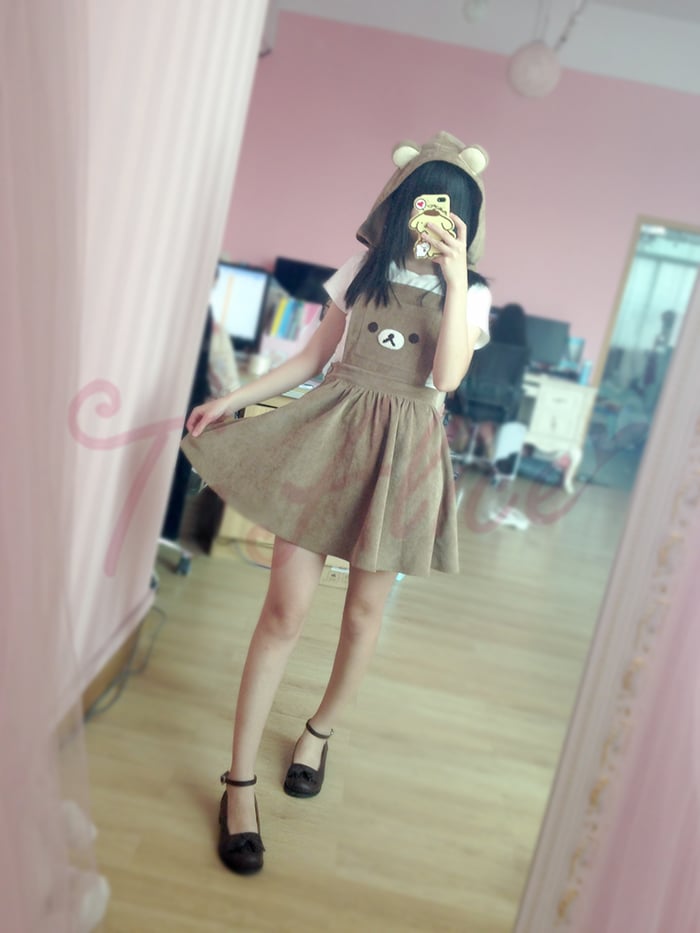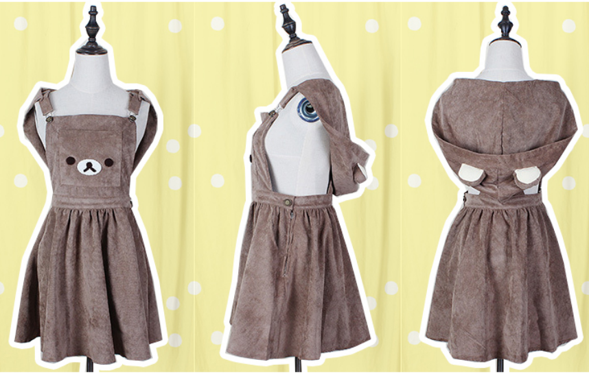 Cute Bear Embroidery Removable Ear Hat Lovely Braces Skirt