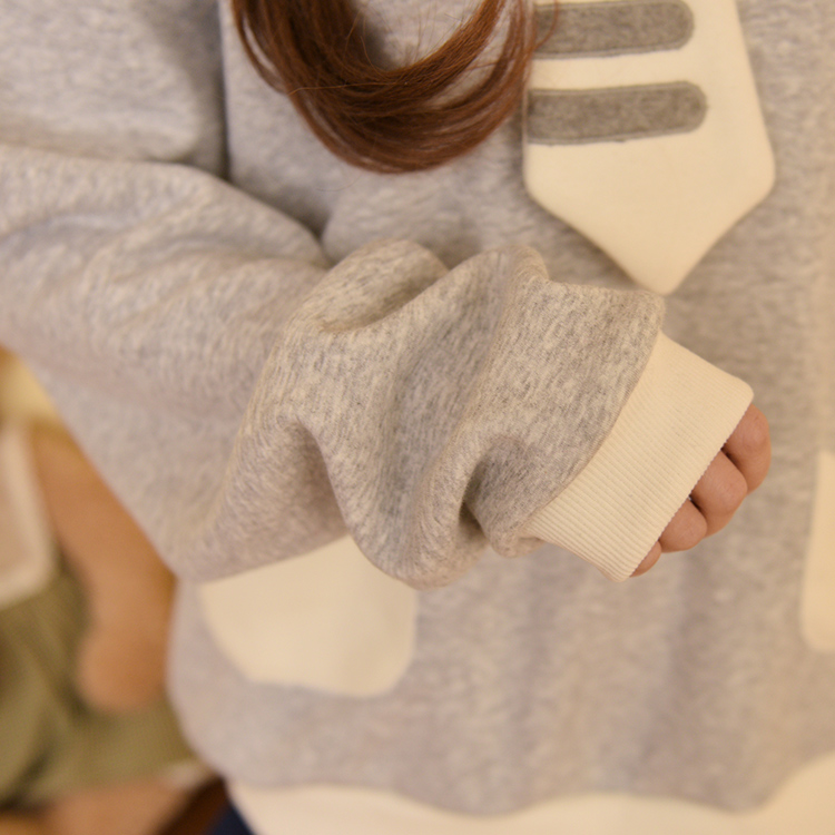 Material:cotton+fleece Size:one size Color:light grey,pink Length 61cm, bust 106cm, shoulder 44cm,sleeve 61cm,