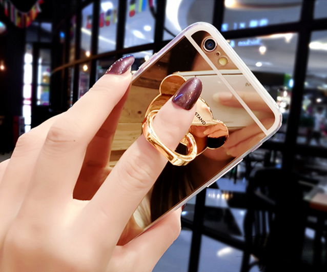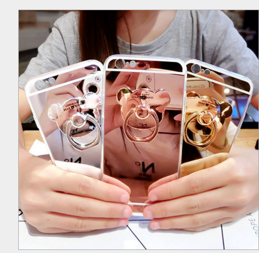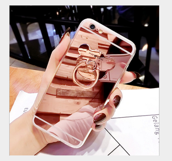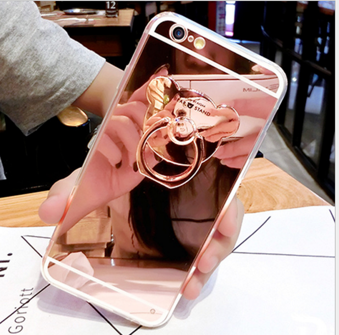 uxury Soft Mirror With 360 Metal Bear Ring Case Cover For iPhone X 8 Plus 7 Plus 6 6S Plus