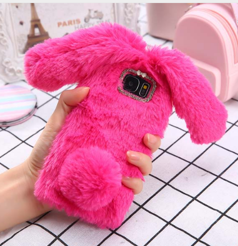 Luxury Lovely 3D Rabbit Ears Warm Plush Furry Soft TPU Phone Case for S6 S7 Edge S8 Plus